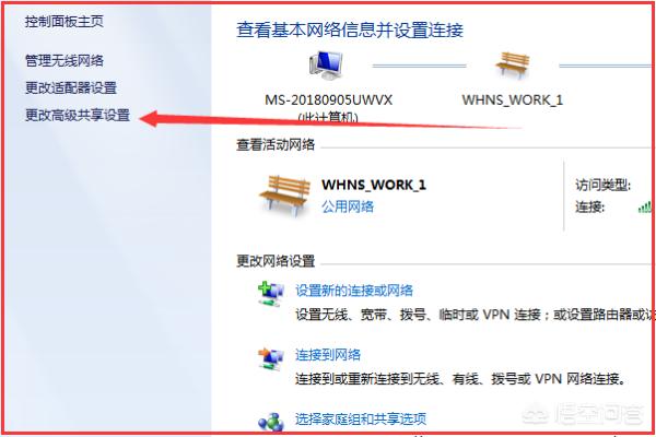 设置其享打印机的具体方法:打开“控制面板”,依次点击“网络和共享中心”→“更改高级共享设置”按钮。
