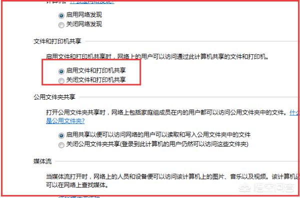 3、最后在共享设置页面,点击【启用文件和打印机共享】就可以共享此电脑上的打印机了。